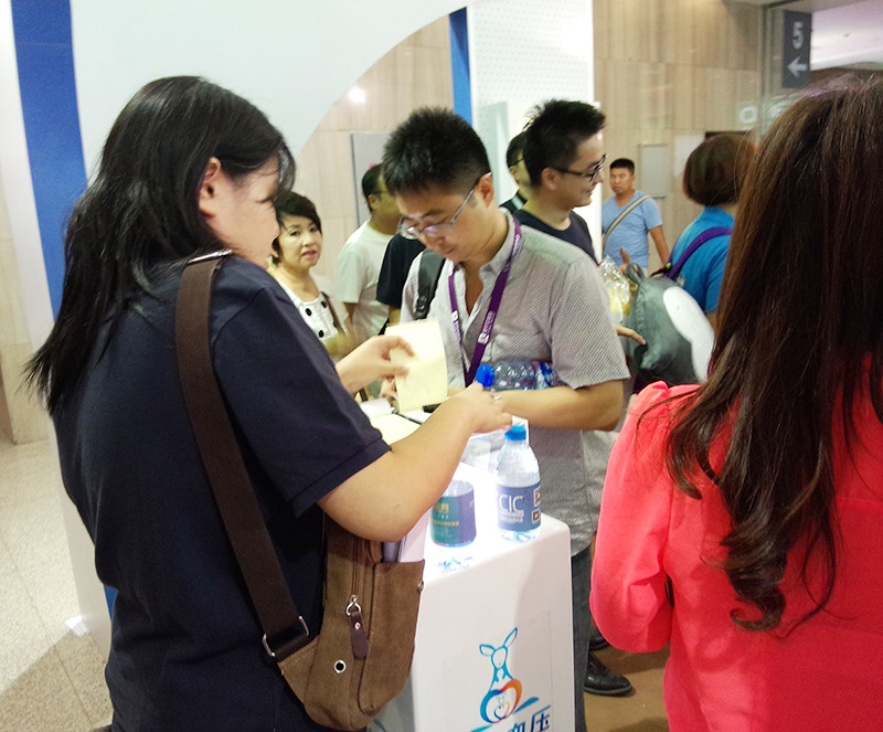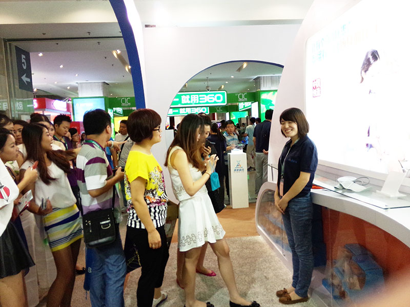 展台体验购买的观众络绎不绝,我们的财务人员只好把收费点搬到了展厅外